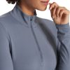 Customize your climate with the Studio Half Zip. With long sleeves and a mock neck, this fitted pullover is exactly what you need for warm ups, cool downs and the stretches in between.