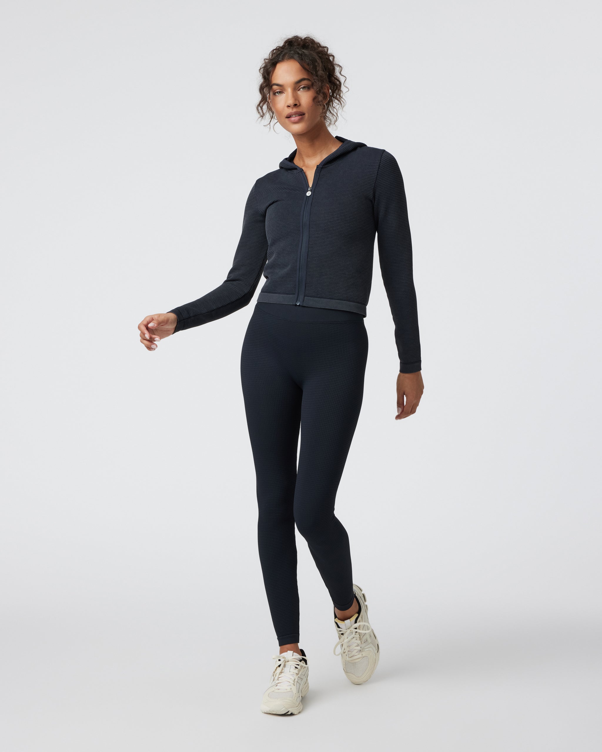 There’s something about our super soft waffle knit that we can’t get enough of. Easy to wear for low-impact recovery days and lounge sessions, this full-zip sweater has an attached hood and ribbed finishes.